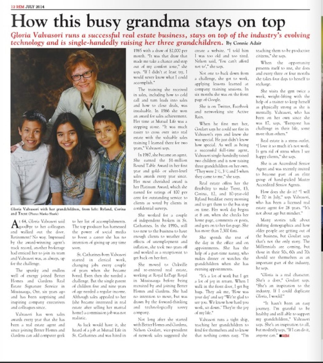 I was honoured to be the featured Realtor ® in a prominent national Canadian Real Estate Magazine, in 2014 called REM (Real Estate Magazine). It follows my journey from 1987 as a newly licenced agent and how Real Estate has changed.
